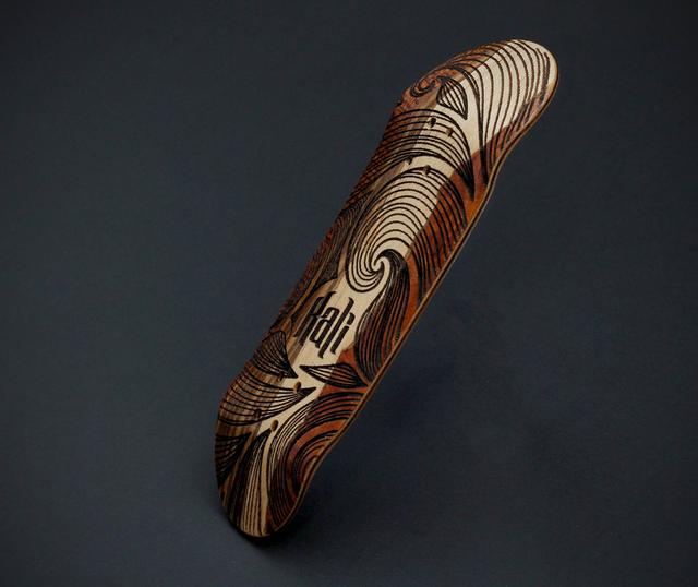 This deck combines two of my favourite techniques: a split-ply using exotic veneer, and a fully engraved bottom ply.