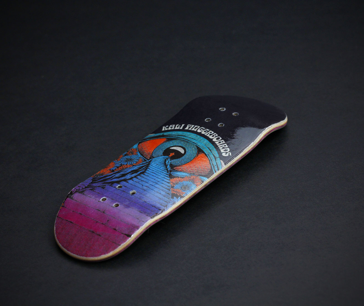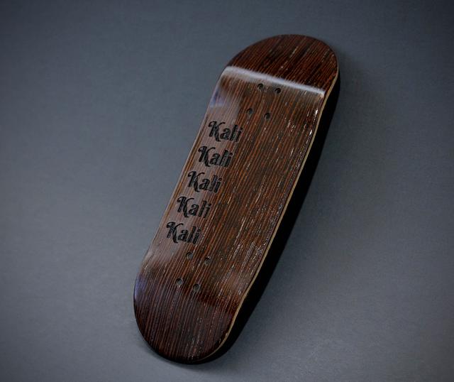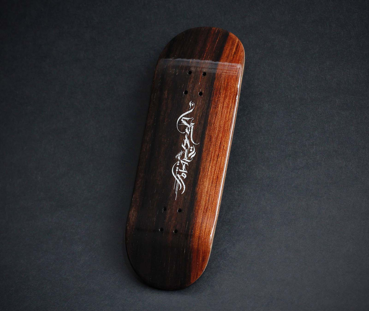 A fingerboard deck from the "Cybernetic" line, with 5 wooden plies, 1 metal ply, and a nice engraved wenge bottom-ply. Very strong deck.