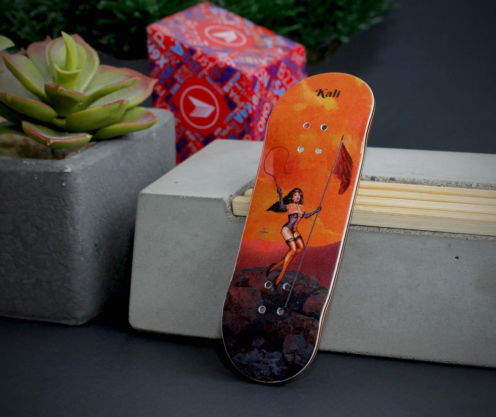 A deck from the new RDV35 mold, specially decorated for our team rider Hugo. Featuring an orange top ply, this deck showcases a graphic that embodies Hugo's persona: an avid NOFX fan, a walking "red flag", all under the gaze of the Lord and the Mount-Royal cross.